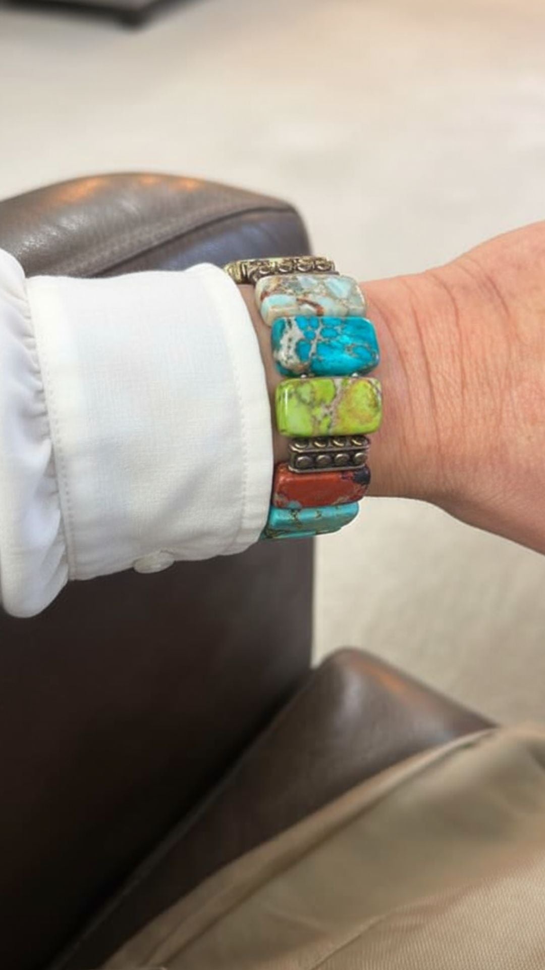 ★★★★★➳ A stunning Amazonite statement ring with a wide band, available in plated silver or plated golden tones. The soft green-blue hues of Amazonite bring a bohemian charm, making each piece unique and soulful.