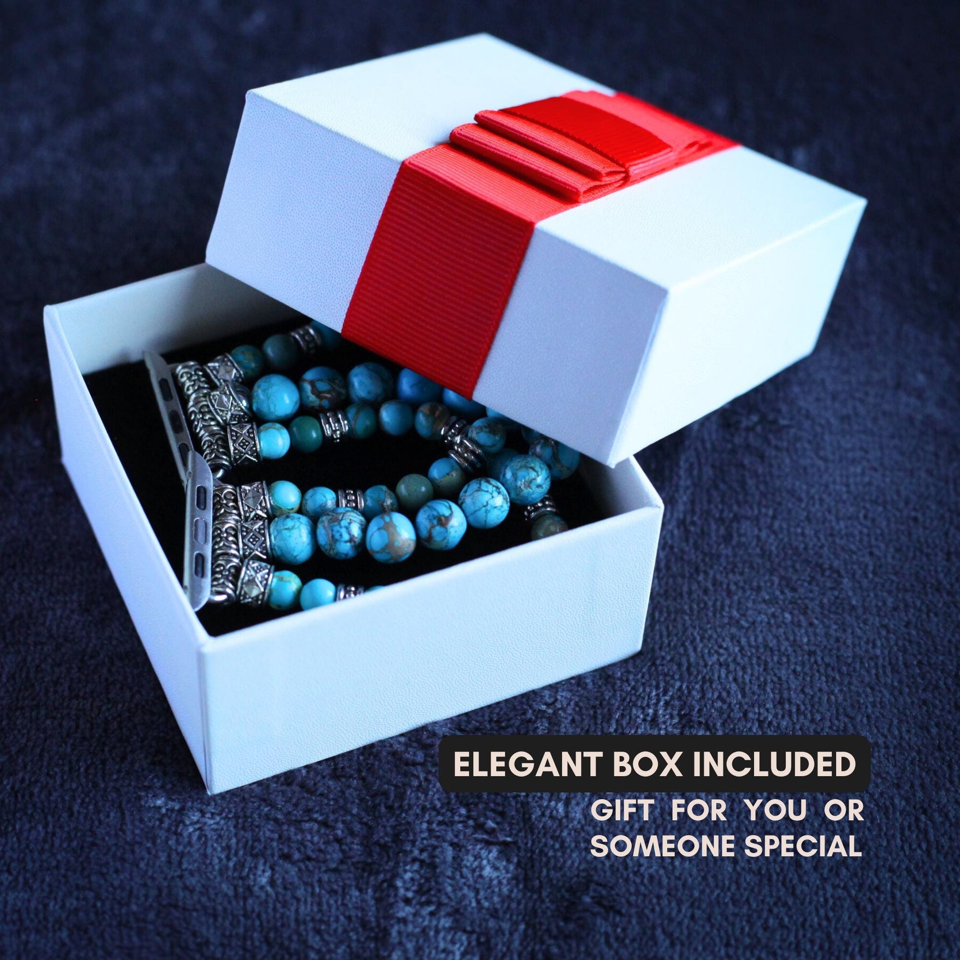 ✦ Made with natural gemstone beads, durable elastic cord, and silver alloy accents. The stretchy design ensures a comfortable fit for most wrist sizes and is compatible with your Apple Watch.